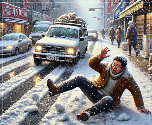 또는 뉴스에서 "오늘 밤부터 습설이 쌓일 예정이니, 미끄러운 도로에 주의하세요!"라고 나오면,