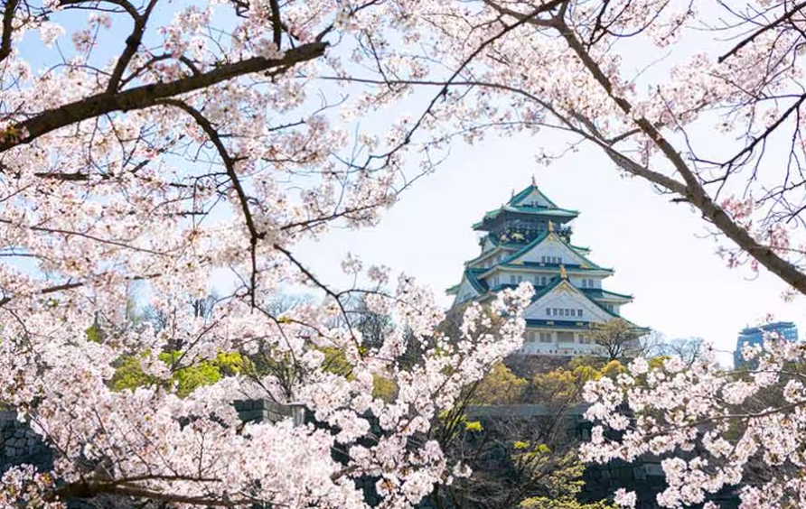 오사카성을 배경으로 펼쳐지는 벚꽃 향연! 일본에서 손꼽히는 벚꽃 명소