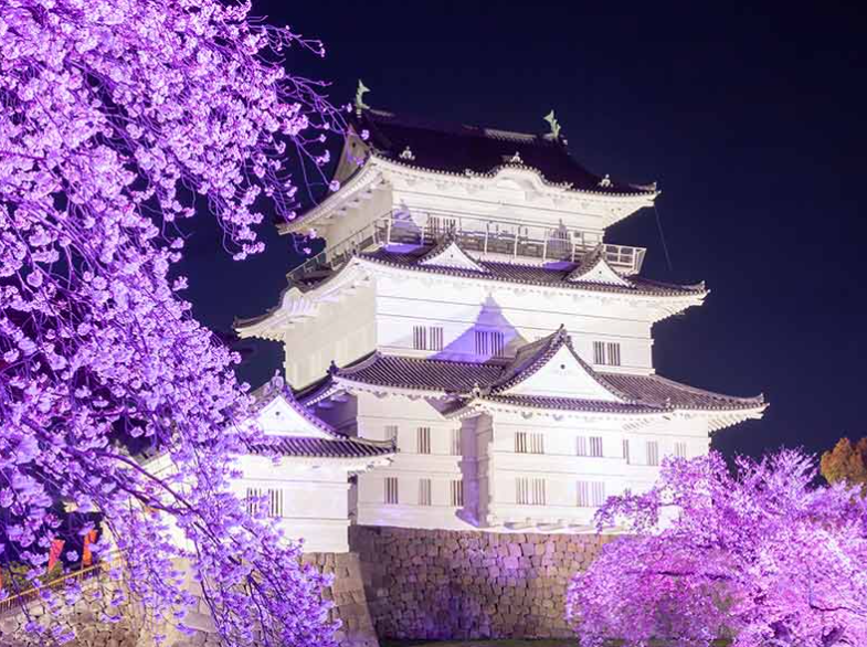 🌸 특징: 쓰루오카 성터에서 펼쳐지는 730그루의 벚꽃 향연