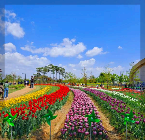 🌸 4. 파주 공릉천 – 무지개 같은 튤립밭!