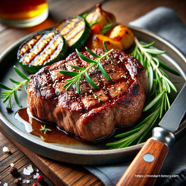 - 고기가 이븐하게 익지 않아서 한쪽만 탄 것 같아. 🍖🔥