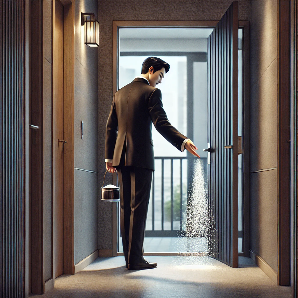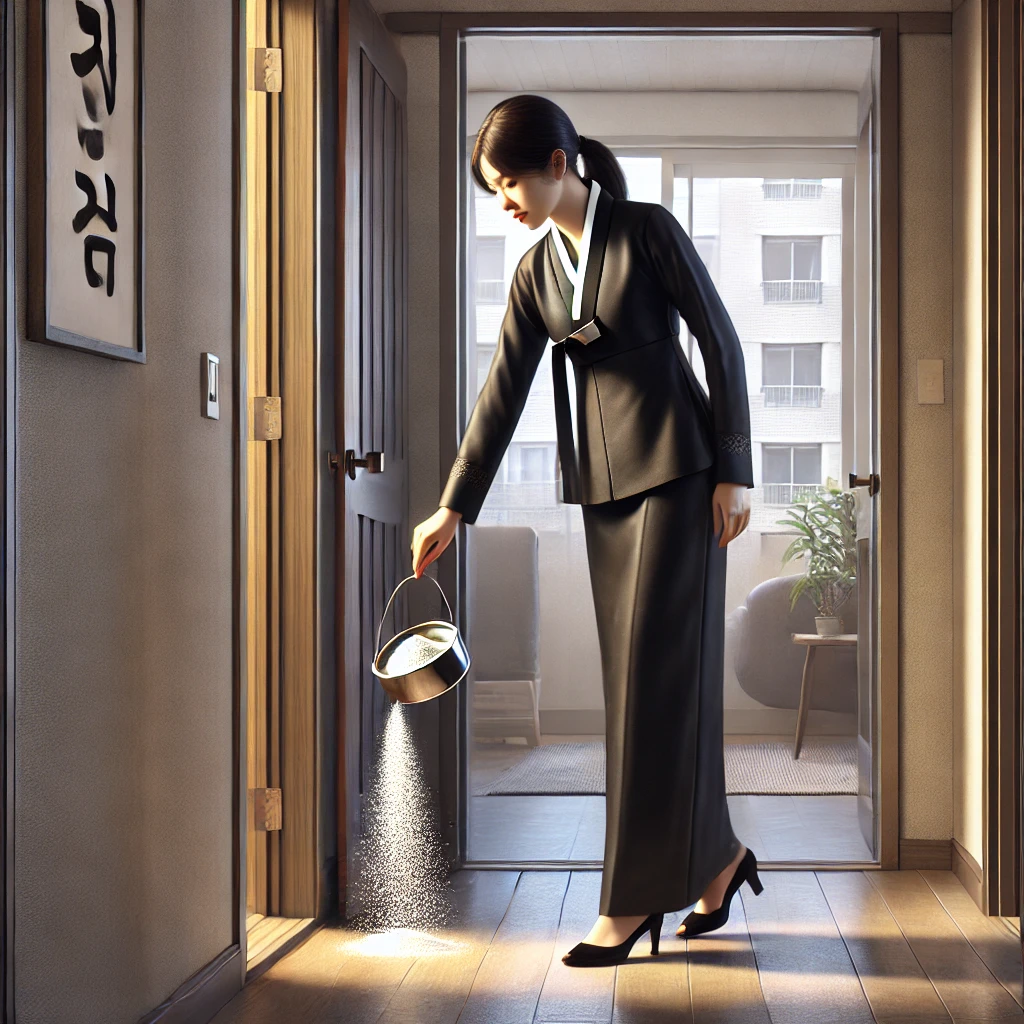 1. 소금 뿌리기 (부정한 기운 정화) 🧂