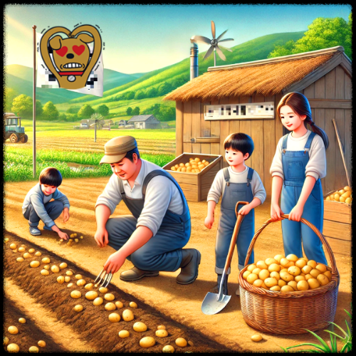 - 감자 캐는 가족의 활기찬 모습